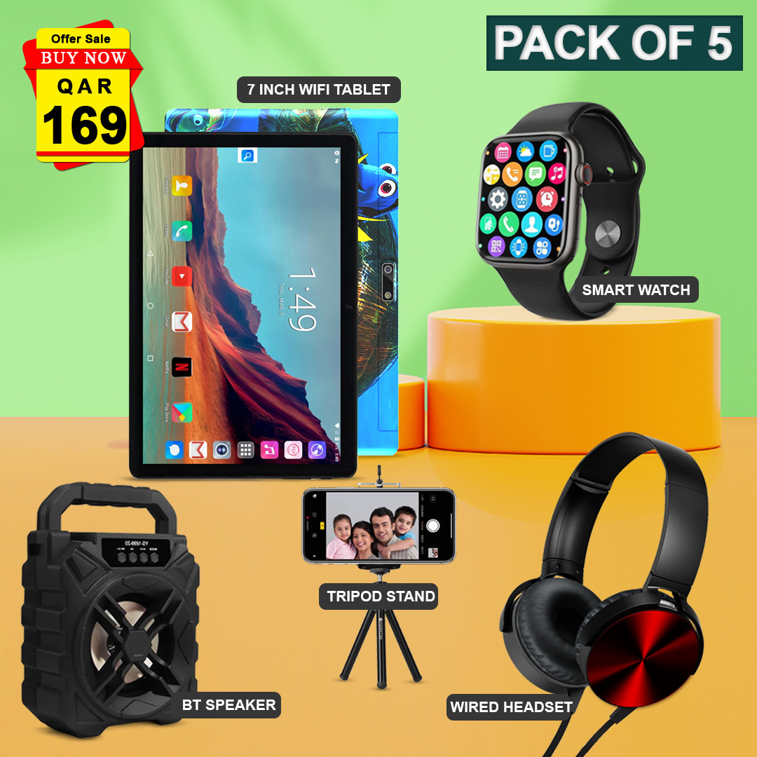 https://www.qaadar.com/product/5-in-1-pack-kids-wifi-tablet-with-free-smart-watch-wired-extra-bass-headset-pk3-bluetooth-speaker-rm-s28-and-mobile-stand