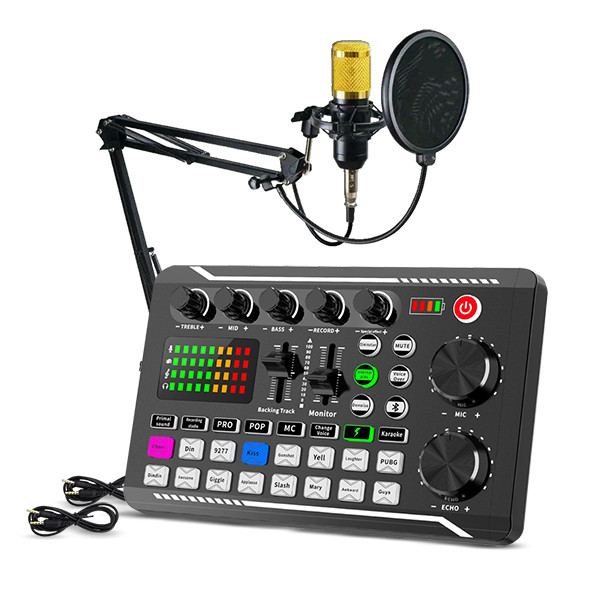F998 Live Sound Card Audio Mixer Full Set With Free Wired Headset