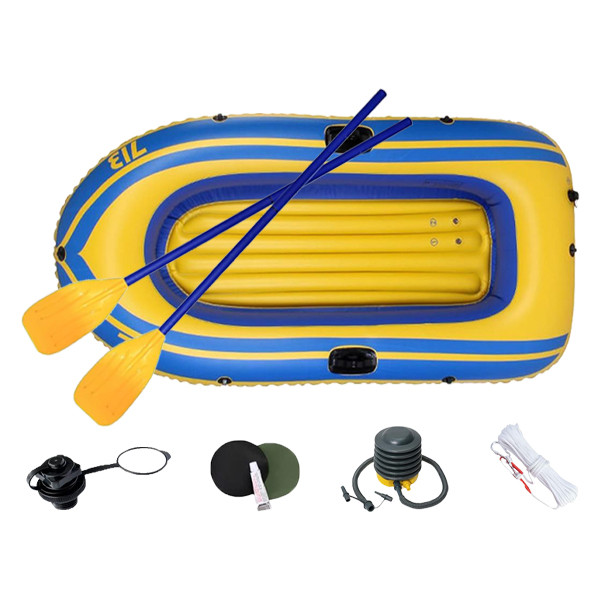 Included Components : Patching and Repair Kit, 2 x Paddle, Rope, Inflatable Boat, Pump