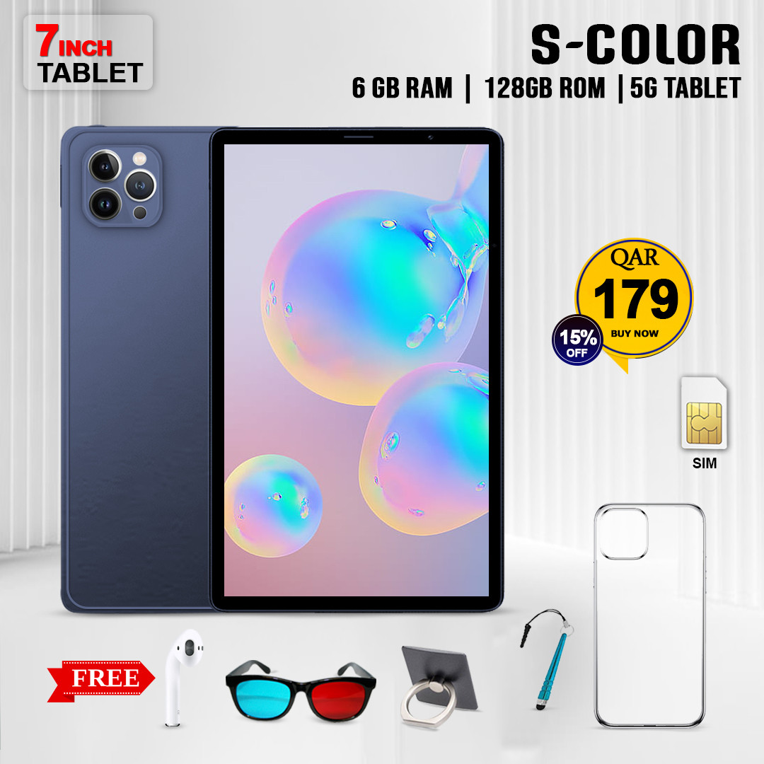S-Color A10s- 7" HD Display Smart Tablet Android 12, 6GB RAM 128GB Storage 13MP Camera 5000mAh Battery